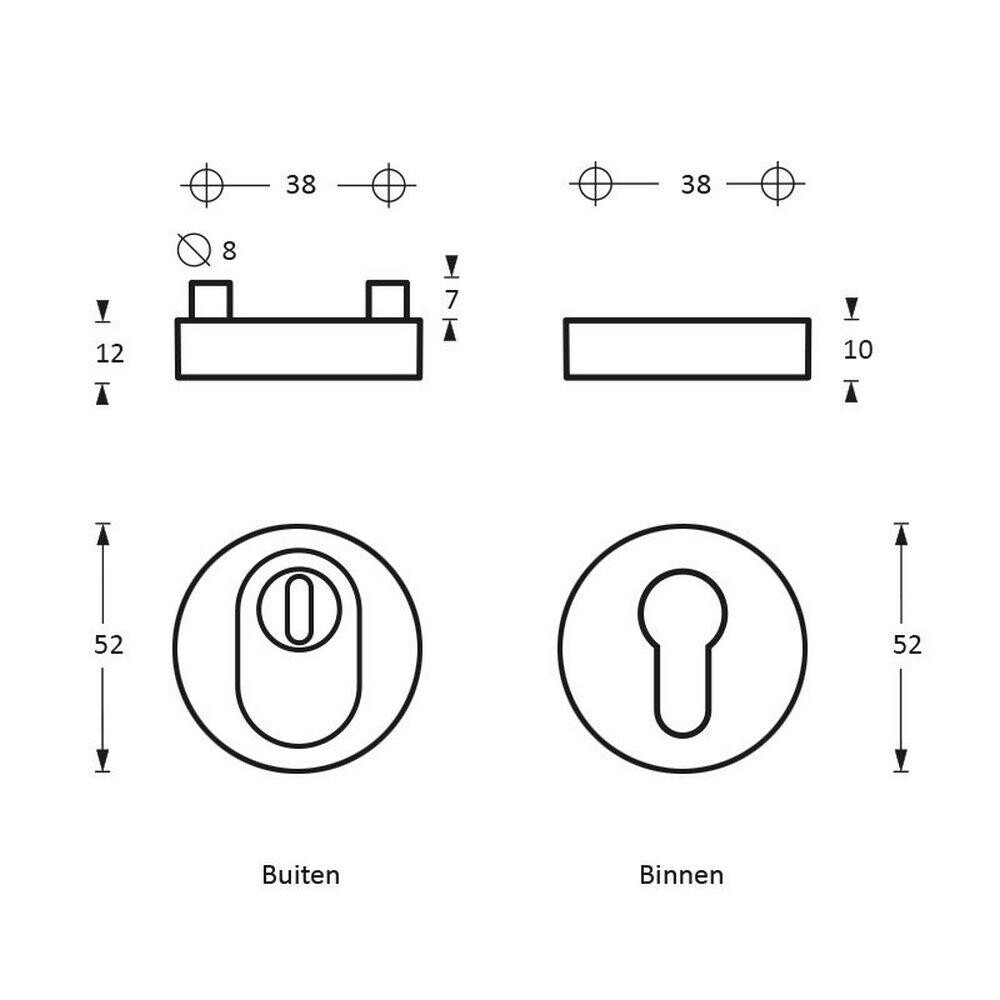 Veiligheidsrozetten rond SKG3 verdekt KT RVS 52x12mm